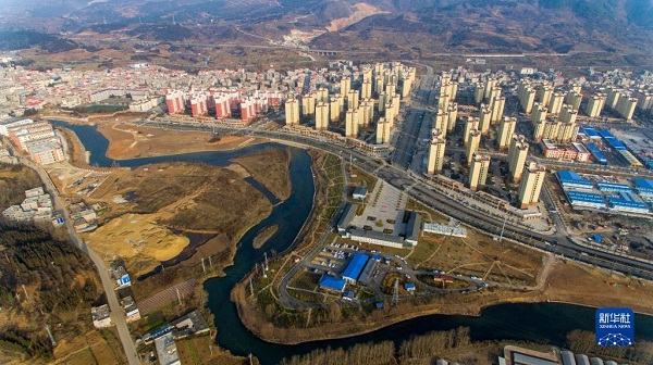 這是位于云南省昭通市境內(nèi)的跨縣易地搬遷安置區(qū)靖安新區(qū)(2021年2月3日攝,無(wú)人機(jī)照片)。新華社記者 江文耀 攝