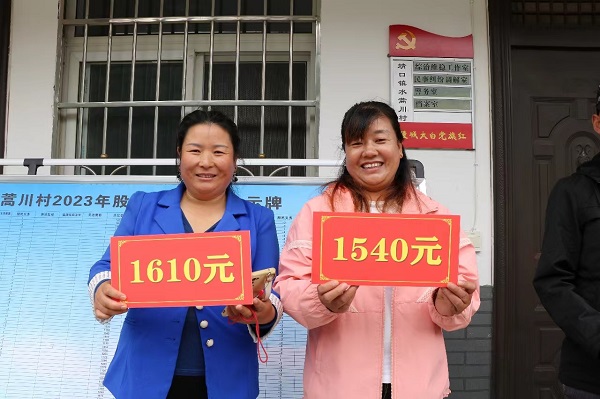 9月18日,石溝村村委會人頭攢動,熱鬧非凡,一年一度的集體經濟分紅大會正在召開,每個群眾臉上都洋溢著豐收的喜悅。據悉,從9月11日起,靖口鎮(zhèn)6個村集體經濟陸續(xù)開展分紅,2023年集體經濟總收益108.7萬元,實現(xiàn)分紅48.1萬元,全鎮(zhèn)997戶群眾享受集體經濟紅利,群眾臉上開出“幸?;ā?。