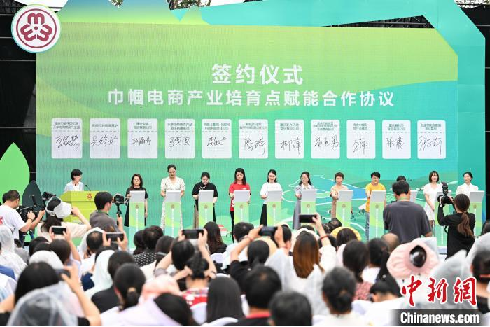 圖為巾幗電商產(chǎn)業(yè)培育點賦能合作協(xié)議簽約儀式。中新網(wǎng)記者何蓬磊攝