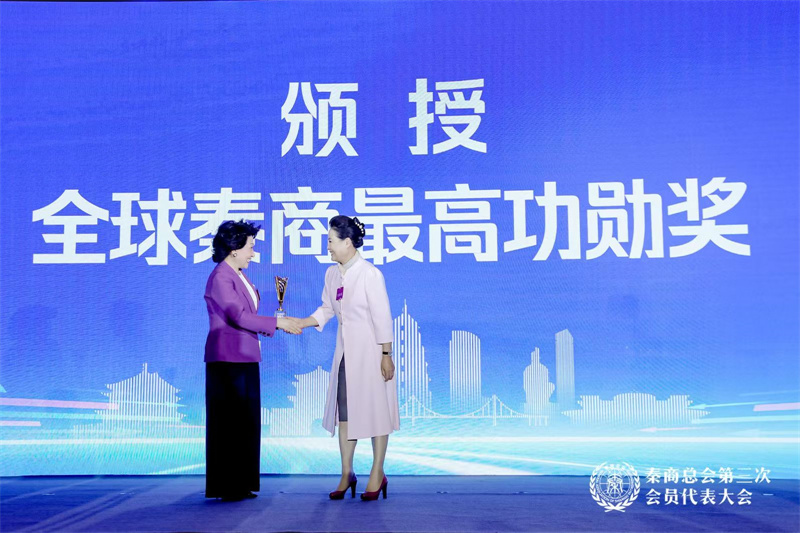 陳春江副省長為新當(dāng)選的秦商總會(huì)永遠(yuǎn)榮譽(yù)會(huì)長鄭翔玲和秦商總會(huì)第三屆理事會(huì)會(huì)長崔榮華授牌,崔榮華會(huì)長為鄭翔玲會(huì)長授予了全球秦商最高功勛獎(jiǎng)。