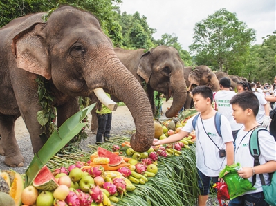 8月12日,云南省西雙版納傣族自治州野象谷景區(qū)舉行世界大象日活動(dòng)。本次活動(dòng)包含大象游行、大象盛宴、打掃象舍等多項(xiàng)內(nèi)容。