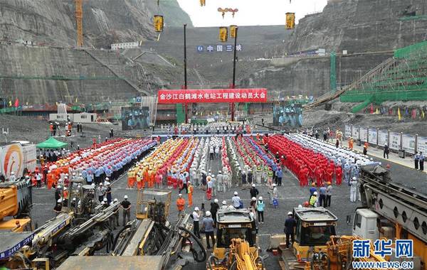 8月3日,金沙江白鶴灘水電站全面開工儀式在大壩基坑底部舉行。當日,全球在建裝機規(guī)模最大水電站白鶴灘水電站進入主體工程全面建設(shè)階段。白鶴灘水電站位于四川省寧南縣和云南省巧家縣境內(nèi)的金沙江干流下游河段上,總裝機規(guī)模達1600萬千瓦,是僅次于三峽工程的世界第二大水電站。該工程由中國三峽集團承建,是國家能源戰(zhàn)略布局“西電東送”的骨干電源點。新華社發(fā)