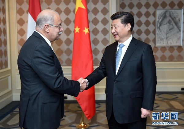 當(dāng)?shù)貢r(shí)間20日晚,剛剛抵達(dá)開(kāi)羅的國(guó)家主席習(xí)近平在下榻酒店會(huì)見(jiàn)埃及總理伊斯梅爾。