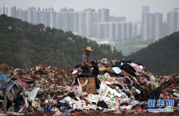 位于五象嶺的城南垃圾填埋場(chǎng)是廣西南寧市唯一一個(gè)垃圾填埋場(chǎng)。今年入夏以來(lái),城南垃圾填埋場(chǎng)平均每天約有440輛次垃圾車進(jìn)出填埋場(chǎng),日填埋量突破3000噸已成為常態(tài),最高達(dá)3600噸,約為填埋場(chǎng)設(shè)計(jì)的日處理能力1200噸的3倍。南寧市除少量餐廚垃圾外,超過(guò)95%的生活垃圾都被直接送到城南垃圾填埋場(chǎng)進(jìn)行填埋。目前,城南垃圾填埋場(chǎng)已不堪重負(fù)幾近滿場(chǎng),如新的填埋場(chǎng)或垃圾處理方式仍未有著落,未來(lái)兩年南寧或?qū)⒚媾R“垃圾圍城”。新華社記者周華攝