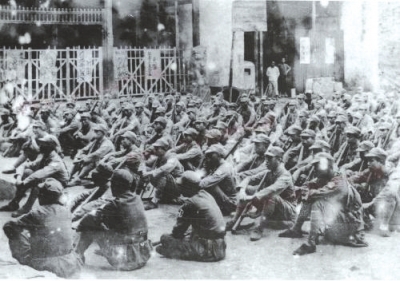 新四軍在皖南巖寺集中(1938年)的歷史照片。