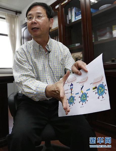 動物實驗有效復旦大學醫(yī)學分子病毒學教育部/衛(wèi)生部重點實驗室姜世勃在講述對中東呼吸綜合征(MERS)病毒具有高抑制活性的全人源單克隆抗體m336的作用過程(6月17日攝)。近日,記者從復旦大學獲悉,復旦大學基礎醫(yī)學院與美國國立衛(wèi)生院共同開發(fā)出一種對中東呼吸綜合征(MERS)病毒具有高抑制活性的全人源單克隆抗體m336,動物試驗效果顯著。新華社記者丁汀攝