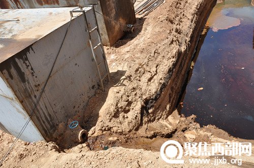 6月13日,筆者來到富縣北道德鄉(xiāng)渭家河萬紫村直羅采油大隊紫25—3井場,看到約40多平方米的污油池未采取任何防滲漏措施,池內(nèi)大部分原油已滲入土壤,剩下的原油在烈日的暴曬下散發(fā)出刺鼻的氣味,池邊一長方體儲油罐的閥門正向坑內(nèi)滴著污油;在嶄新的抽油機下方,四溢的原油在地下聚成一條小河。