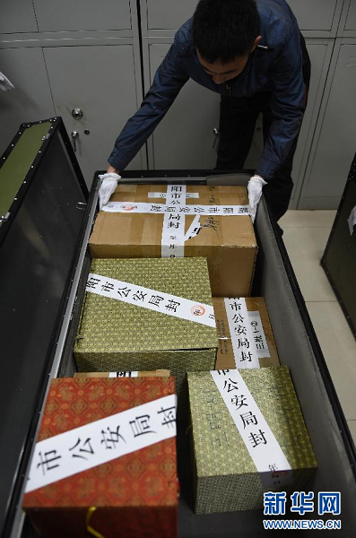 4月10日,辦案人員對追回的部分文物進行封存。