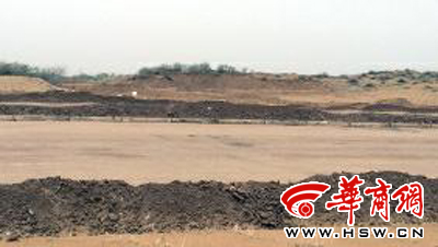 榆林繞城快速干道旁邊的沙堆上,有明顯的挖沙痕跡