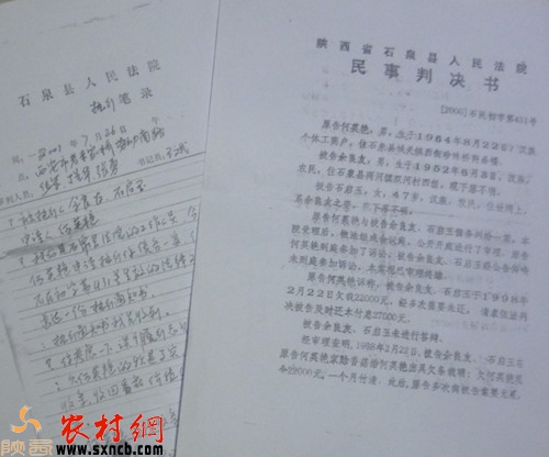 寧陜縣法院一審判決書。