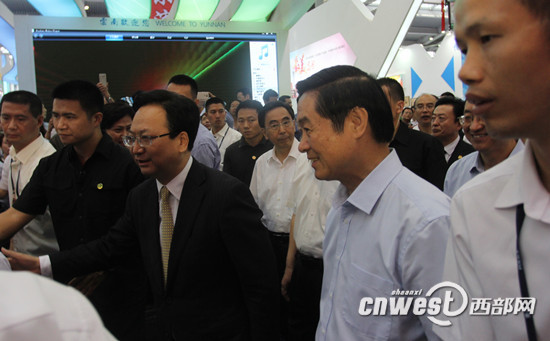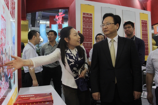 中共中央政治局委員、中宣部部長劉奇葆巡至陜西館,省委常委、省委宣傳部部長景俊海匯報展館情況