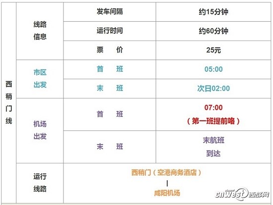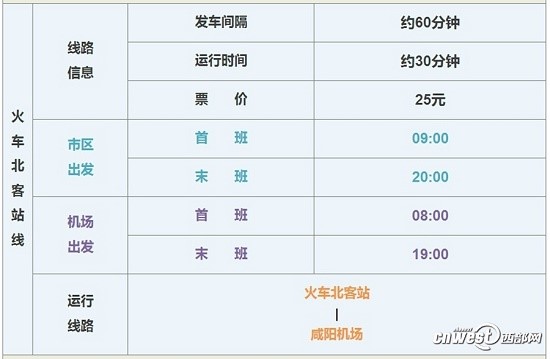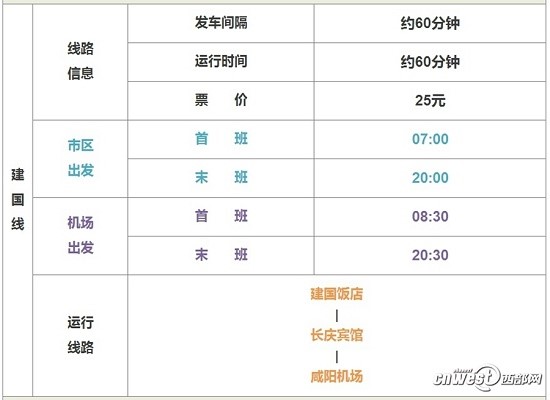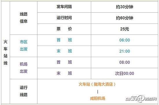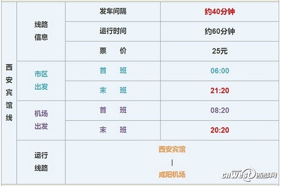 其中,西安賓館線路平均發(fā)車間隔由原60分鐘縮短為40分鐘,西安出發(fā)末班時間由21:00調(diào)整為21:20,咸陽機(jī)場出發(fā)末班時間由21:20調(diào)整為20:20。