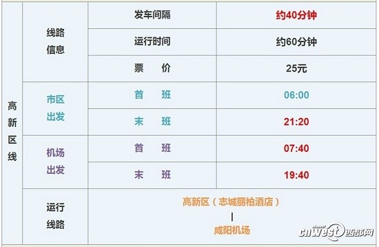 高新區(qū)(志誠麗柏酒店)平均發(fā)車間隔由原30分鐘調(diào)整為40分鐘。西安出發(fā)末班時間由21:00調(diào)整為21:20;咸陽機(jī)場出發(fā)首班時間由7:30調(diào)整為7:40,末班時間由19:30調(diào)整為19:40。(記者 孫鵬)