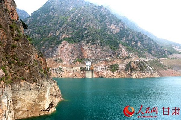 依山勢(shì)而建的引洮供水工程水源地九甸峽水利樞紐。牟健 攝