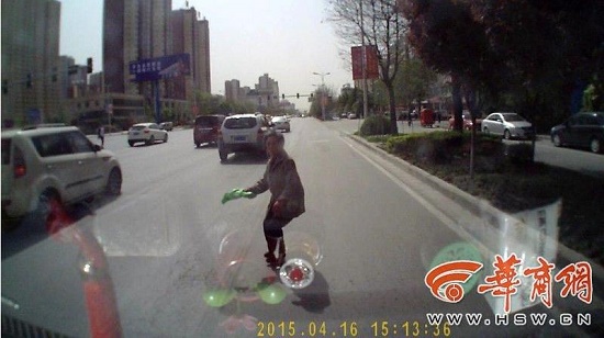 4月16日下午5時許,網(wǎng)友“創(chuàng)業(yè)者李鑫”微博爆料稱:“行車至咸陽世紀(jì)大道海泉灣附近,被一老婦一年輕女子合伙碰瓷,幸虧眼尖手快并安裝有行車記錄儀,請相關(guān)部門重視此類喪心病狂的行為,太寒心了!”