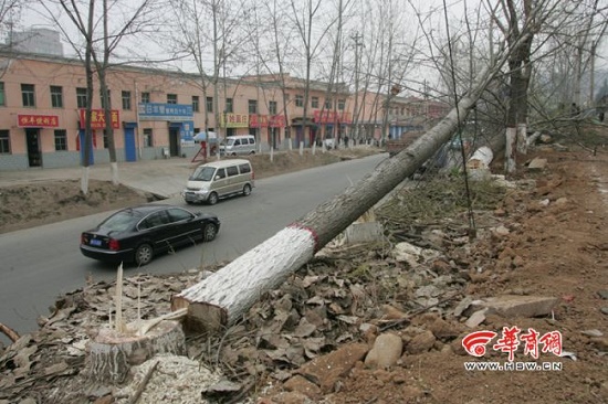 已經(jīng)長了20多年34棵楊樹被鋸斷