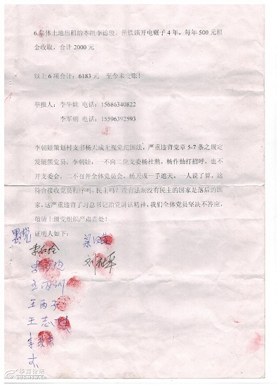 以上合計(jì)20余萬,去向不明。請(qǐng)回答我們,請(qǐng)還群眾一個(gè)明白,給干部一個(gè)清白!