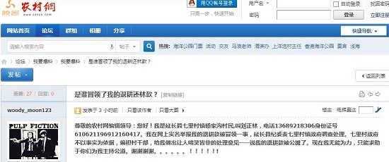 我是延長縣七里村鎮(zhèn)楊家溝村民,叫劉正林,電話13689218306身份證號610621196912160417。我在網(wǎng)上實(shí)名舉報(bào)我的退耕款被冒領(lǐng)一事,延長縣紀(jì)委責(zé)七里村鎮(zhèn)政府調(diào)查處理。七里村政府不以事實(shí)為依據(jù),偏袒村干部,給我做出讓人啼笑皆非的處理意見——說我的退耕款被公攤了?,F(xiàn)在我無能為力,只能求助于你們?yōu)槲抑鞒止馈?/p>