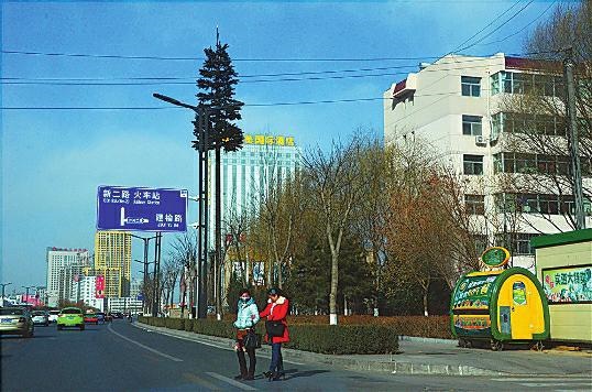 昨日中午,華商報(bào)記者從榆林大道南段出發(fā),一直走到榆林大道與迎賓大道十字路口,共發(fā)現(xiàn)有6棵像賀先生所說(shuō)的松樹,而且這種松樹和路旁的行道樹沒啥區(qū)別,樹皮、樹枝、樹葉都做得很逼真,如果不仔細(xì)看,還真的很難分辨。據(jù)知情人介紹,這種偽裝的松樹其實(shí)是信號(hào)基站。
