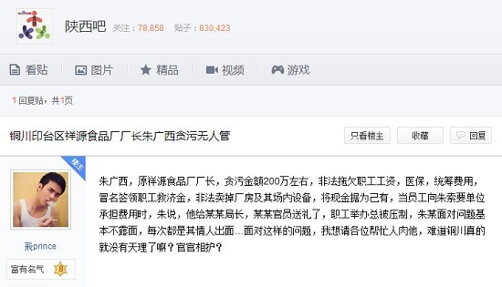 朱廣西,原祥源食品廠廠長,貪污金額200萬左右,非法拖欠職工工資,醫(yī)保,統(tǒng)籌費用,冒名簽領(lǐng)職工救濟(jì)金,非法賣掉廠房及其場內(nèi)設(shè)備,將現(xiàn)金據(jù)為己有,當(dāng)員工向朱索要單位承擔(dān)費用時,朱說,他給某某局長,某某官員送禮了,職工舉辦總被壓制,朱某面對問題基本不露面,每次都是其情人出面…面對這樣的問題,我想請各位幫忙人肉他,難道銅川真的就沒有天理了嘛?官官相護(hù)?