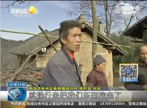 商洛市商州區(qū)板橋鎮(zhèn)西興村程村組村民:用挖掘機(jī)挖了一個大豁豁,強(qiáng)行弄走了,拿我們的東西就像是拿他們家東西一樣的,不給我們說就拿走了。