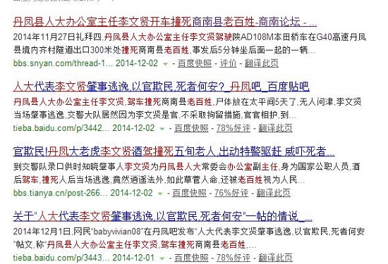 2014年11月27日禮拜四,丹鳳縣人大辦公室主任李文賢駕駛陜AD108M本田轎車在G40高速丹鳳縣境內(nèi)齊村隧道出口300米處撞死商南縣老百姓,事發(fā)后5分鐘坐后面一起的一輛轎車離開現(xiàn)場,致傷著不顧,導(dǎo)致救護(hù)車把傷著送到醫(yī)院時(shí)死亡,以上內(nèi)容絕對(duì)真實(shí),望有良知的人擴(kuò)散此消息,死者現(xiàn)在還在太平間。