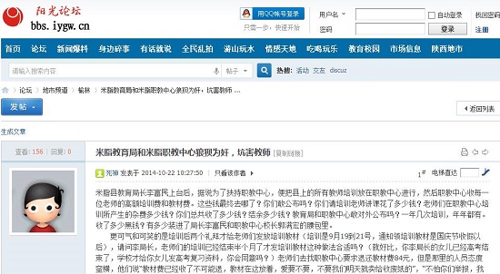 米脂縣教育局長李富民上臺后,據(jù)說為了扶持職教中心,便把縣上的所有教師培訓放在職教中心進行,然后職教中心收每一位老師的高額培訓費和教材費。這些錢最終去哪了?你們敢公布嗎?你們請培訓老師講課花了多少錢?老師們在職教中心培訓所產(chǎn)生的雜費多少錢?你們總共收了多少錢?結(jié)余多少錢?教育局和職教中心敢對外公布嗎?一年幾次培訓,年年都有。收了多少黑錢?有多少裝進了局長李富民和職教中心校長郭滿宏的腰包里。
