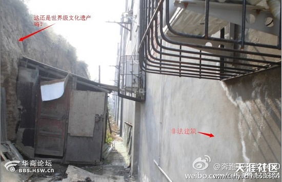 新北城市場置千年文物古跡而不顧破壞世界級文物遺址當(dāng)成權(quán)利,而且?guī)讉€大棚就緊靠城墻而建,不僅在建設(shè)大棚的時候破壞了古城墻的根基,且大棚建成后,大棚上的雨水直接滴落在古城墻之頭,這樣侵害世界級文物遺址,只有這位似乎通天的億萬富豪才如此膽