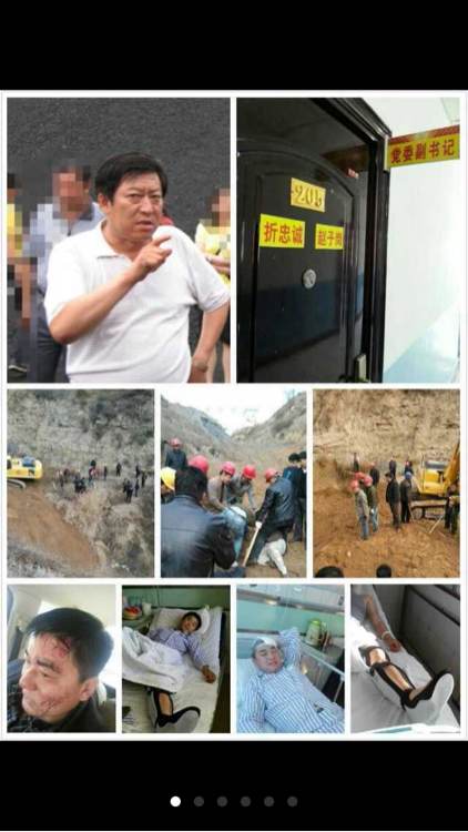 2014年11月15日,該礦又在廣大村民不知情的情況下,強(qiáng)行非法占用村民耕地開工建設(shè)副井口。遇村民阻攔后,20多人竟將7位村民打傷,重傷3人后逃離現(xiàn)場,派出所出警后至今未抓獲一人。此事還未妥善處理,而強(qiáng)行非法占用村民耕地建設(shè)副井口行為繼續(xù)上演,暴徒未抓獲,非法占用的事未說明,礦方又繼續(xù)強(qiáng)占,目前已經(jīng)激起我們廣大村民的民憤,我們誓要捍衛(wèi)自己的合法權(quán)益……我們廣大老百姓是弱勢群體,折忠誠一人獨(dú)大,我們的無數(shù)次的上訪反映都石沉大海,縣政府多次答復(fù)的解決都不了了之。懇請(qǐng)社會(huì)各界和媒體關(guān)注我們村民,還老百姓朗朗乾坤。