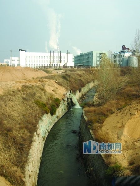 桑樹(shù)渠村東北面的榆神工業(yè)區(qū)錦界工業(yè)園化工廠排污渠 這個(gè)小山村已被工業(yè)園區(qū)包圍了