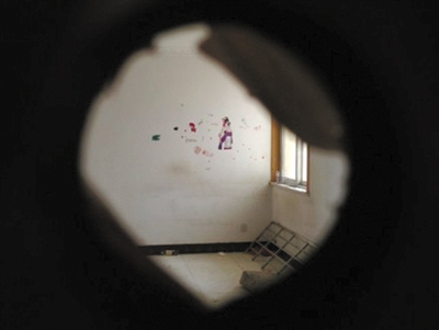6月22日,南京市江寧區(qū)泉水新村,透過兩名女童家門上的小洞,可以看到墻上貼著卡通娃娃和小星星。