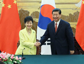 中國國家主席習近平6月27日下午在人民大會堂同韓國總統(tǒng)樸槿惠舉行會談。兩國元首就發(fā)展中韓戰(zhàn)略合作伙伴關系、加強在朝鮮半島局勢等重大國際和地區(qū)問題上的合作深入交換意見,達成廣泛共識。