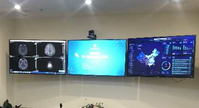 (與會人員在“生命源”健康站遠(yuǎn)程醫(yī)療室與美國專家連線)