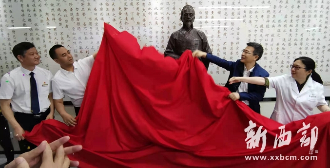 ▲陜西省中醫(yī)醫(yī)院醫(yī)務(wù)處主任路波(右二)為張仲景銅像揭幕