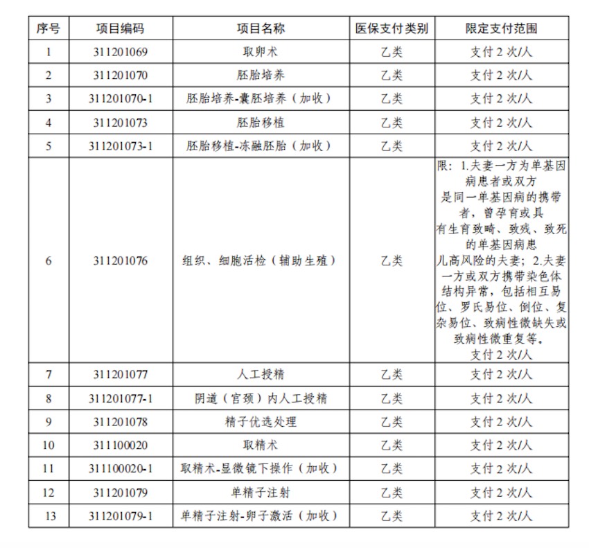 擬納入基金支付范圍的治療性輔助生殖類醫(yī)療服務(wù)項目。四川省醫(yī)保局供圖