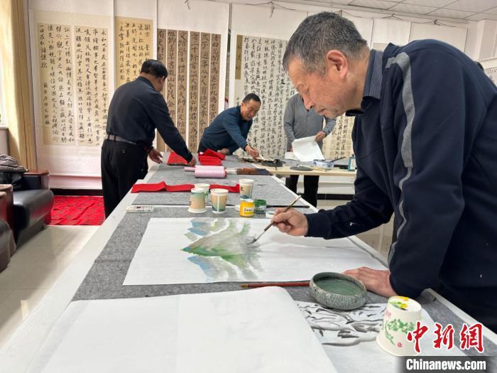 2024年1月,甘肅省平?jīng)鍪谐缧趴h書(shū)法愛(ài)好者在社區(qū)一起繪畫(huà)、寫(xiě)春聯(lián)。史靜靜 攝