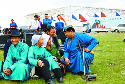演出結(jié)束后,隊(duì)員們?cè)诟标?duì)長(zhǎng)烏力吉帶領(lǐng)下,到因腿腳不方便,未能到現(xiàn)場(chǎng)觀看演出的老人們的床邊,為他們進(jìn)行面對(duì)面的補(bǔ)充演出。一首《父親的草原母親的河》唱出了烏蘭牧騎隊(duì)員對(duì)農(nóng)牧民群眾的一片深情。曲畢,養(yǎng)老院的護(hù)工緊緊拉著隊(duì)員的手,激動(dòng)地說(shuō):“老人們雖然沒(méi)辦法用語(yǔ)言表達(dá)出來(lái),但是他們已經(jīng)用動(dòng)作表達(dá)了他們的感激,感謝黨和國(guó)家,感謝烏蘭牧騎的隊(duì)員們能夠過(guò)來(lái)看望他們?!?/p>