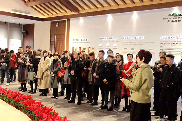 在政策解讀展板前,天朗農(nóng)業(yè)公司總經(jīng)理賀小龍從“長安唐村·中國農(nóng)業(yè)公園”的名字由來講起,闡述了長安唐村創(chuàng)新地方政府、村集體經(jīng)濟組織、市場主體構成的“三元共建”發(fā)展模式,踐行“五個美麗”“推動五大工程”“實施五項策略”“實現(xiàn)五個一百”“形成五個樣板”的“五個五”發(fā)展目標。長安唐村通過多種產(chǎn)業(yè)深度融合,鄉(xiāng)村風貌的修復與盛唐文化的振興,將整合鄉(xiāng)村旅游綜合體、農(nóng)業(yè)雙創(chuàng)園、田園綜合體等多種功能有機復合體,充分發(fā)揮好先行示范、品牌唯一、包容開放的特性,最終創(chuàng)造區(qū)域共建、成果共享、發(fā)展共贏的良好局面。