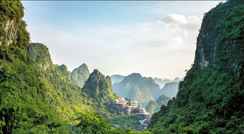 景區(qū)北部規(guī)劃以其獨特的環(huán)境條件及草藥種植地、竹林等資源為基礎(chǔ),設(shè)置融知識性、趣味性和游樂性于一體的旅游項目,形成以巖溶生態(tài)科普、游賞、體驗為主要功能的科普游憩區(qū)。在下弄拉一帶區(qū)域設(shè)置內(nèi)容豐富、極具特色的生態(tài)體驗設(shè)施,形成體驗石漠化治理環(huán)境改善后帶來的美好、幸福生活的生態(tài)體驗區(qū)。在蘭電堂南部教子山一帶,規(guī)劃依托現(xiàn)有的普陀寺,通過營造氛圍、參與項目設(shè)置等,形成以宗教祈福、文化風情體驗為主要功能的祈福文化區(qū)。