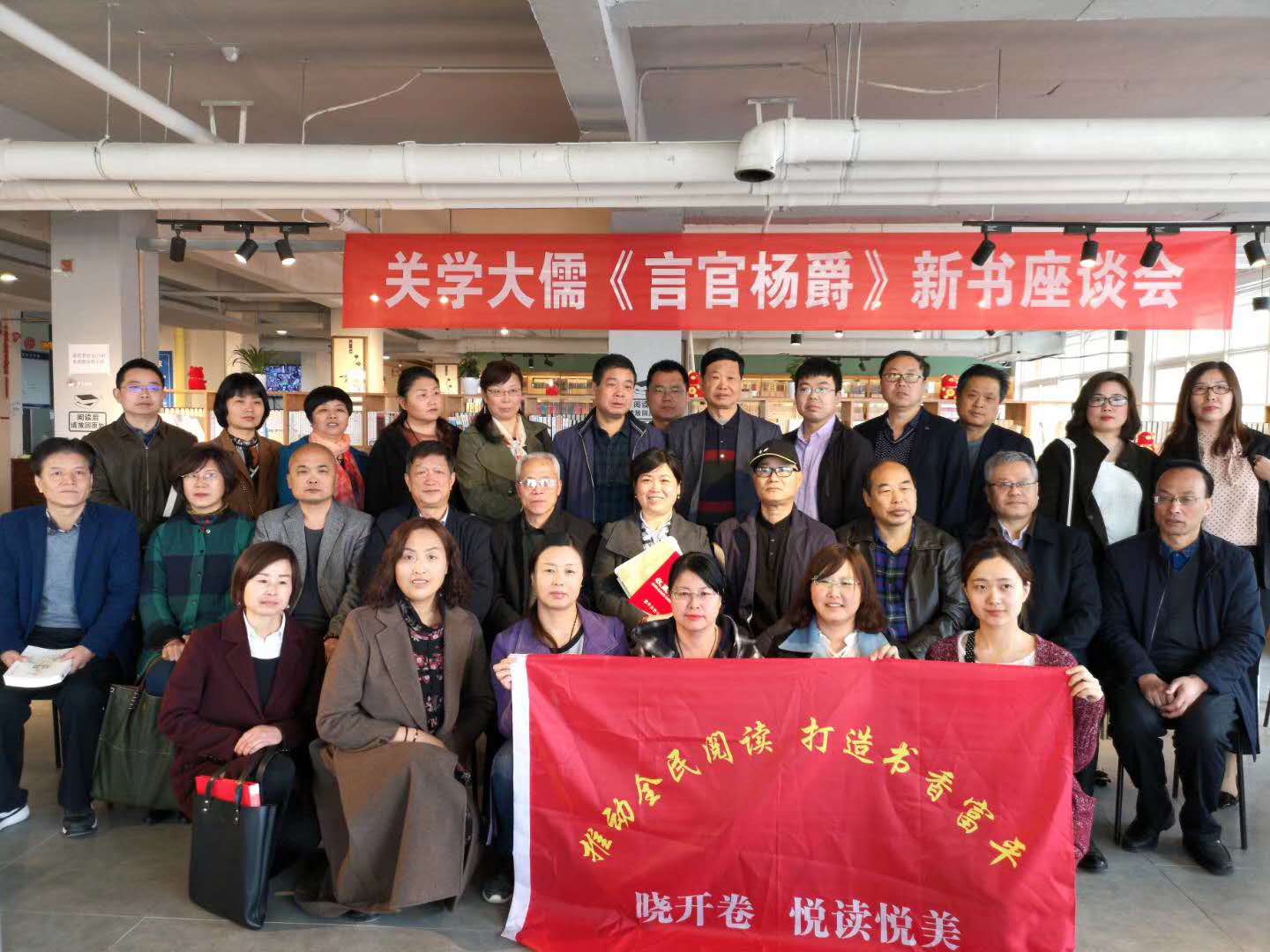 “熱淚和筆墨,三年寫楊爵,幸得逢盛世,微才修大學?!?月26日上午,渭南作家張娟關學大儒系列長篇歷史小說《言官楊爵》新書座談會在楊爵故里陜西富平舉行。座談會由秦嶺書院主辦,悅讀悅美讀書俱樂部承辦,渭南市作協(xié)、秦嶺書院、臨渭區(qū)作協(xié)部分學者、作家,富平籍作家、富平讀書館代表,悅讀悅美俱樂部部分讀者及楊氏后裔近五十人參加了座談會。