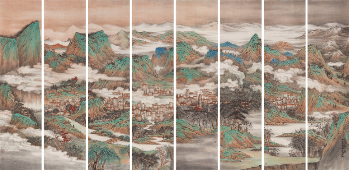 盛世長安——關(guān)中八景通景屏(140X280cm)