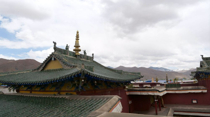 這是夏魯寺重檐歇山式屋頂,呈現(xiàn)典型的漢藏融合風(fēng)格(2024年5月8日攝)。新華社記者邱星翔攝