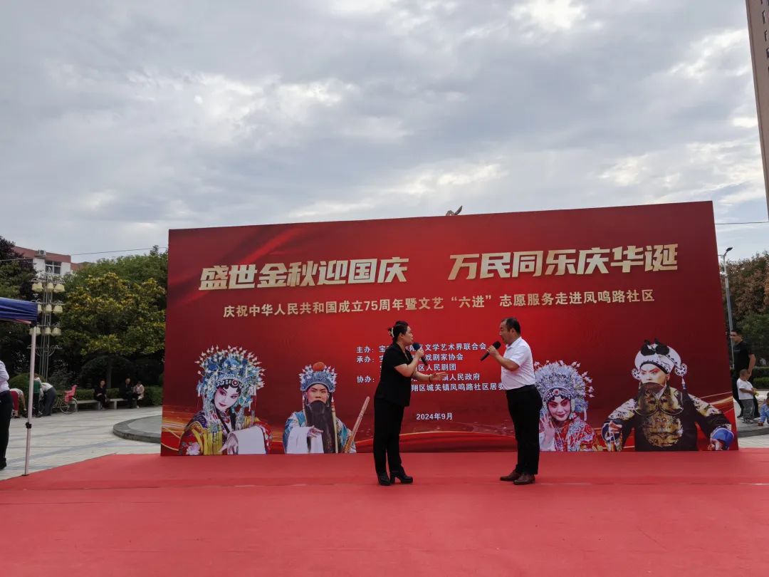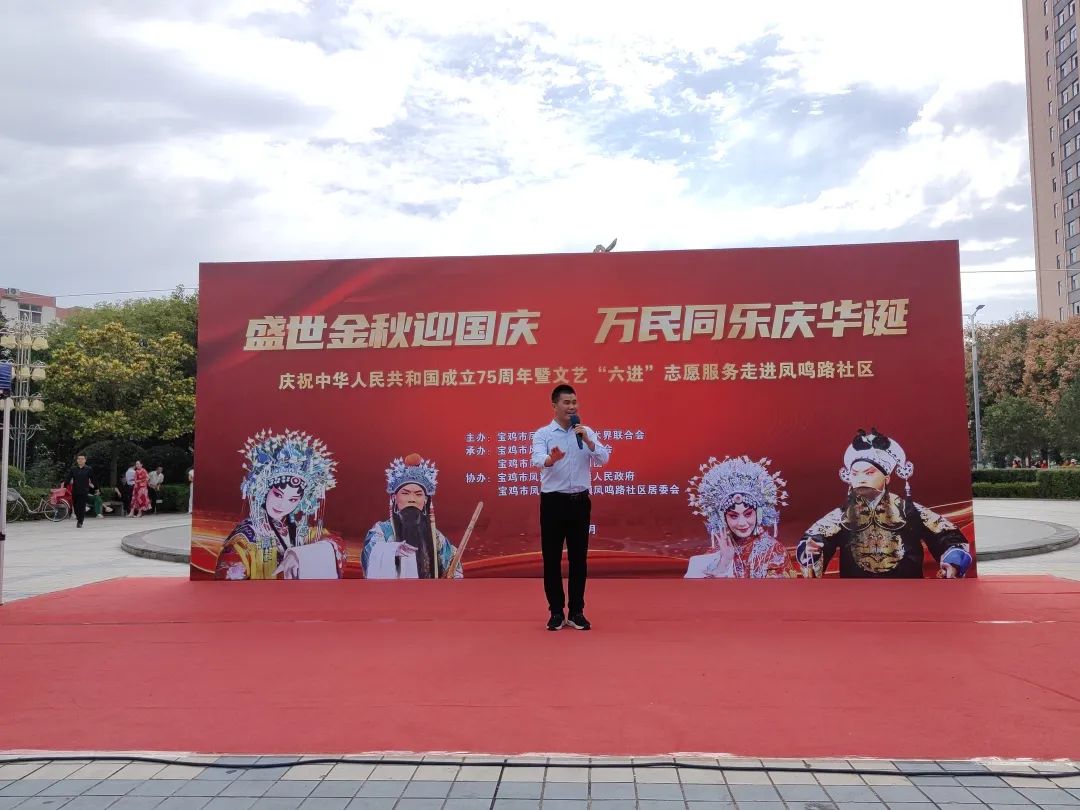 9月25日,由寶雞市鳳翔區(qū)文學(xué)藝術(shù)界聯(lián)合會主辦,區(qū)戲劇家協(xié)會、區(qū)人民劇團(tuán)承辦,鳳翔區(qū)城關(guān)鎮(zhèn)人民政府、城關(guān)鎮(zhèn)鳳鳴路社區(qū)居委會協(xié)辦的慶祝中華人民共和國成立75周年暨文藝“六進(jìn)”志愿服務(wù)活動走進(jìn)鳳鳴路社區(qū),現(xiàn)場500多名群眾近距離享受了一場精彩紛呈的秦腔盛宴。