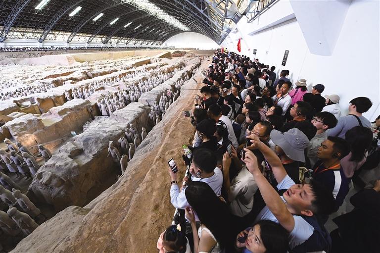 秦始皇帝陵博物院國慶假期前2天接待游客數(shù)量處于高位。來自海內(nèi)外的游客在這里領(lǐng)略世界第八大奇跡的雄渾,體驗秦文化的獨特魅力。