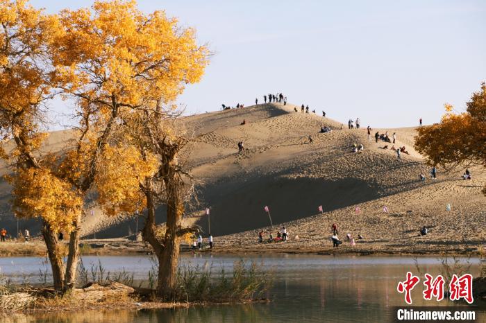 中新網(wǎng)新疆尉犁10月20日電(喇小飛)時(shí)值晚秋,位于塔克拉瑪干沙漠邊緣的羅布人村寨景區(qū)內(nèi),金色的胡楊裝點(diǎn)著景區(qū),絡(luò)繹不絕的游客或爬上連綿起伏的沙丘,感受長(zhǎng)河落日?qǐng)A的大漠風(fēng)情,或騎上駱駝,和駝隊(duì)一起穿越沙漠,或坐上沙漠越野車,體驗(yàn)在無(wú)垠沙海中沖浪的驚險(xiǎn)與刺激……