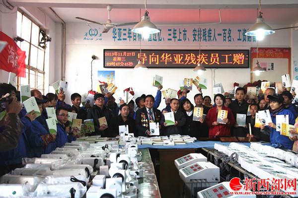 王芳聞說:“華亞公司是殘疾人的家,也是殘疾人作家的家。兩年前,中國好人、華亞公司董事長郭永勝、殘疾人作家薛云平和我經過商議,克服種種困難后,在全國第一個成立了陜西省殘疾人作家協會。因此,在陜西文學基金會幫助殘疾人作家出書后,我們第一個想到的就是華亞及郭董,為這里工作的殘疾員工簽名贈書,以表感謝!”
