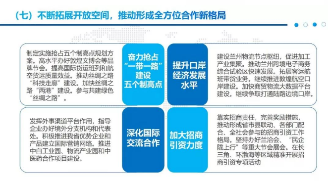 報告指出,為推進城鄉(xiāng)區(qū)域協(xié)調(diào)發(fā)展,打造新的增長點增長極增長帶,謀劃培育區(qū)域發(fā)展新板塊新動能,2019年,甘肅省全面啟動榆中生態(tài)創(chuàng)新城規(guī)劃,統(tǒng)籌推進蘭州大學“雙一流”和蘭州副中心建設,打造新興經(jīng)濟增長極。