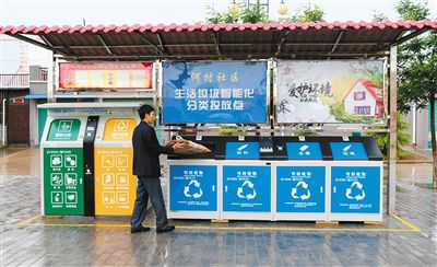 高陵區(qū)通遠(yuǎn)街道何村社區(qū)生活垃圾智能化分類投放點(diǎn) (資料圖片) 記者 翟小雪 攝