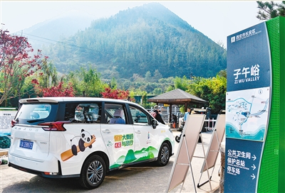 車(chē)身印制著“保護(hù)大秦嶺,長(zhǎng)安與您行”的綠色字體,旁邊還畫(huà)有一只憨態(tài)可掬的卡通大熊貓,十分可愛(ài)又醒目。