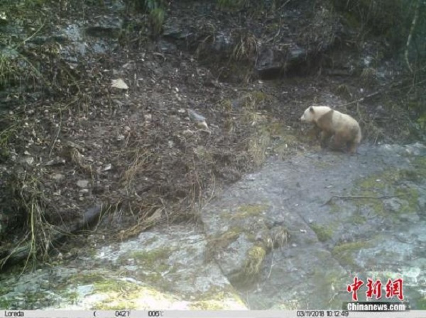秦嶺地區(qū)發(fā)現(xiàn)野生棕色大熊貓。 長青自然保護區(qū) 供圖
